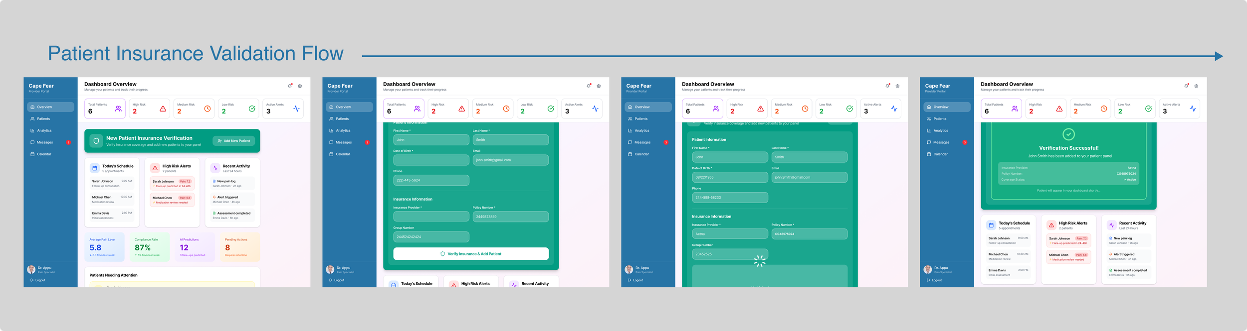 AI-Enhanced Experience: Patterns are learned → Pain is predicted → User confirms → AI interprets → Doctor acts immediately