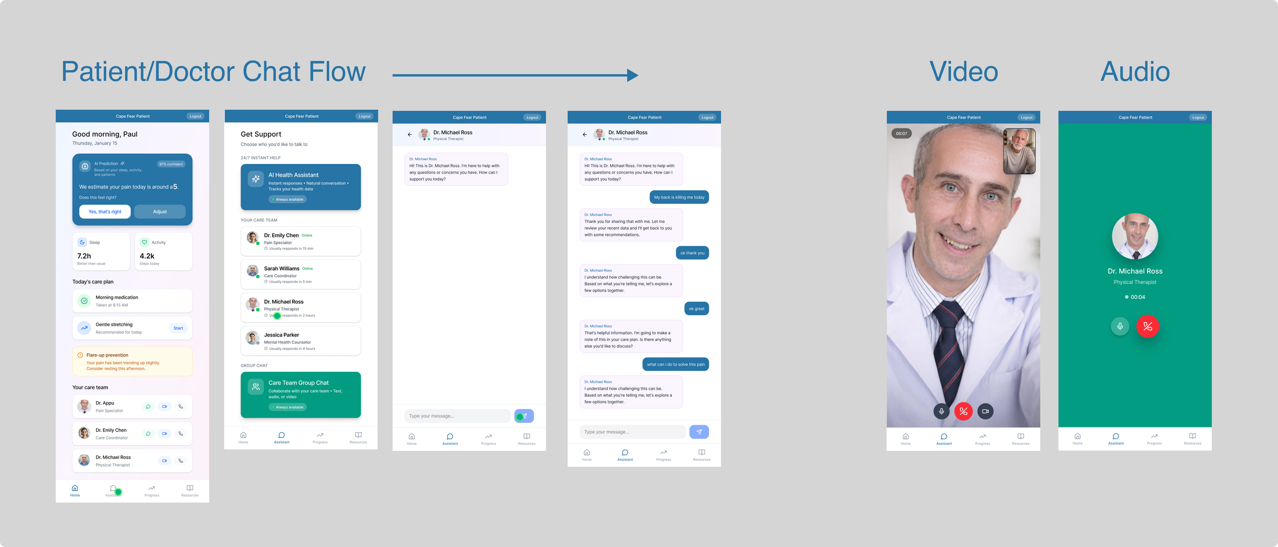 While the app performed well overall, to make adoption of the features easier on the customer, most of the video and chat functions were later integrated into the current Telehealth app that doctors and patients currently use and are more familiar with.